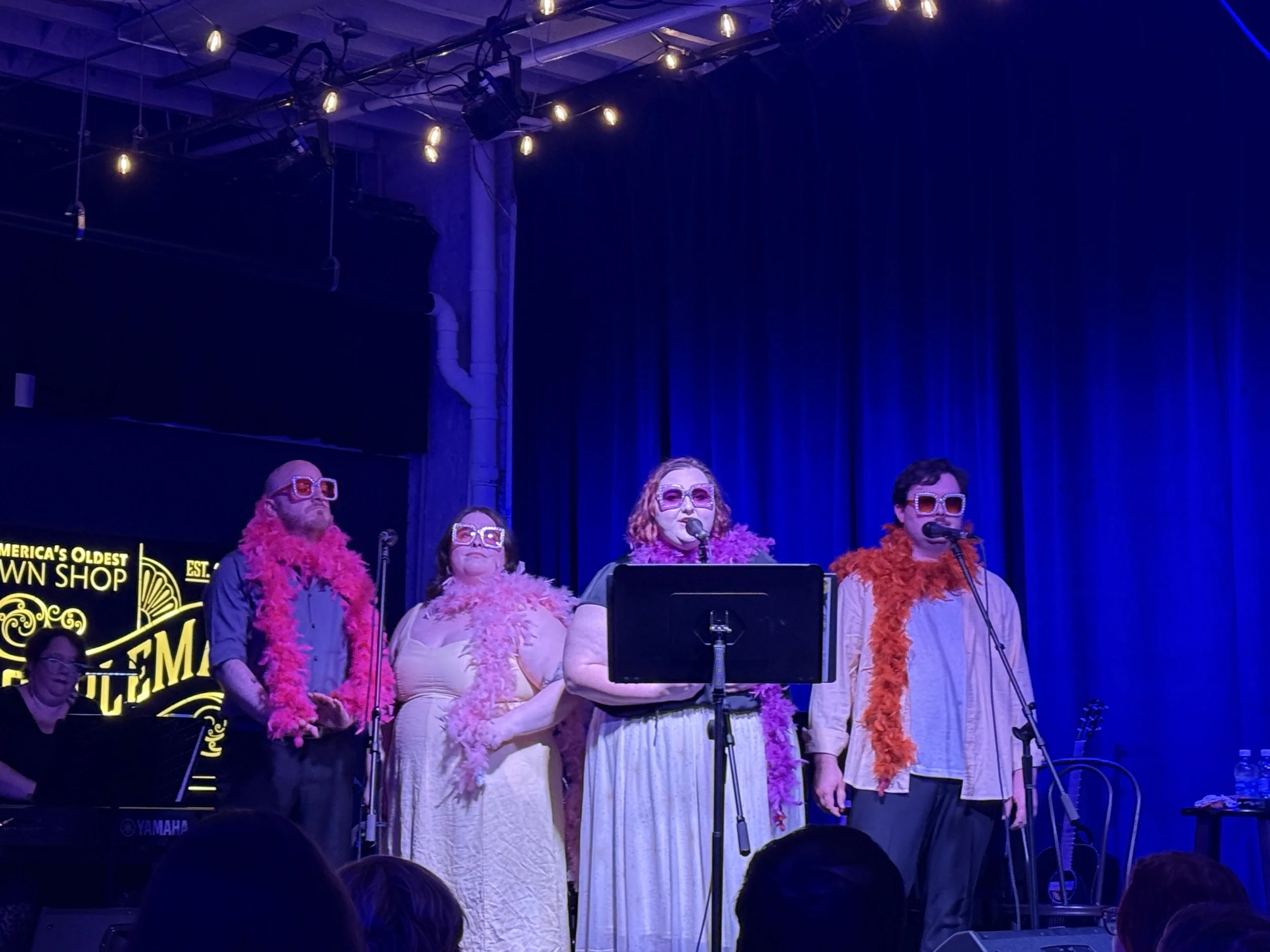 Each event features a small but mighty ensemble—typically four powerhouse vocalists backed by a live trio of piano, drums, and guitar—delivering themed nights of show-stopping musical theatre numbers. From hilarious to heartfelt, our songs always fit the moment.